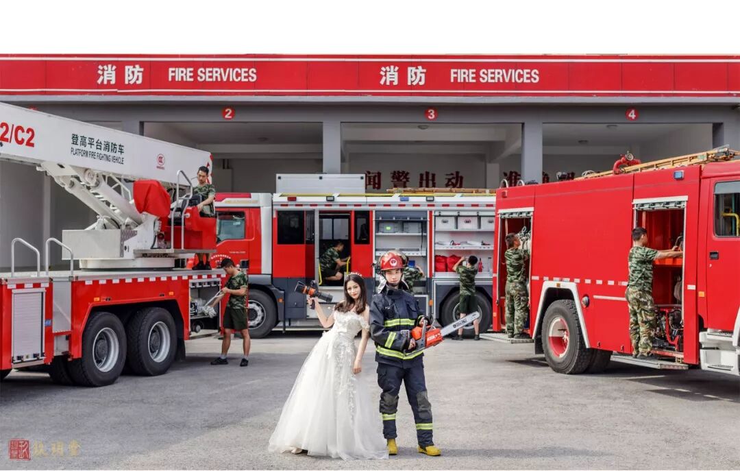 这时候,在工作的地点——消防警营办婚礼,可以说是很机智了!