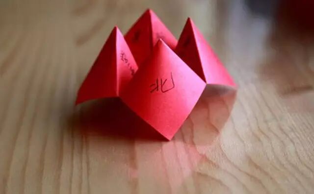 还记得这个用纸折的小玩意吗?不过这次上面写的不再是公主、丑小鸭,而是新郎或新郎需要现场做的事。比如:现场说出对方的10个优点(不会的,先去学学邓叔叔)。