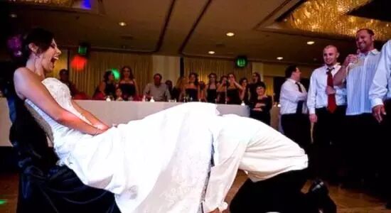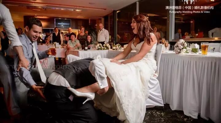 从褪下吊袜带的方式来说,含蓄点儿的用手;奔放的,当然就直接用嘴了。在咬吊袜带之前,玩high的新郎往往会性感地爬过去,上演一出让宾客尖叫连连的热辣“舞蹈”。