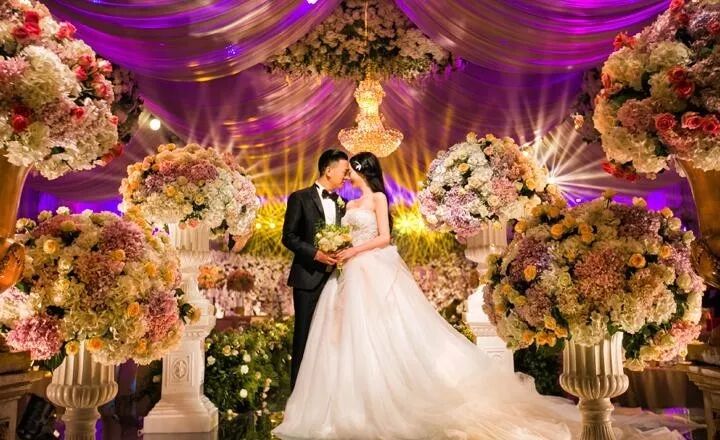 一来你们是婚礼当天的主角,主角当然应该站在舞台中央;二来是为了便于照顾各方宾客的感受。