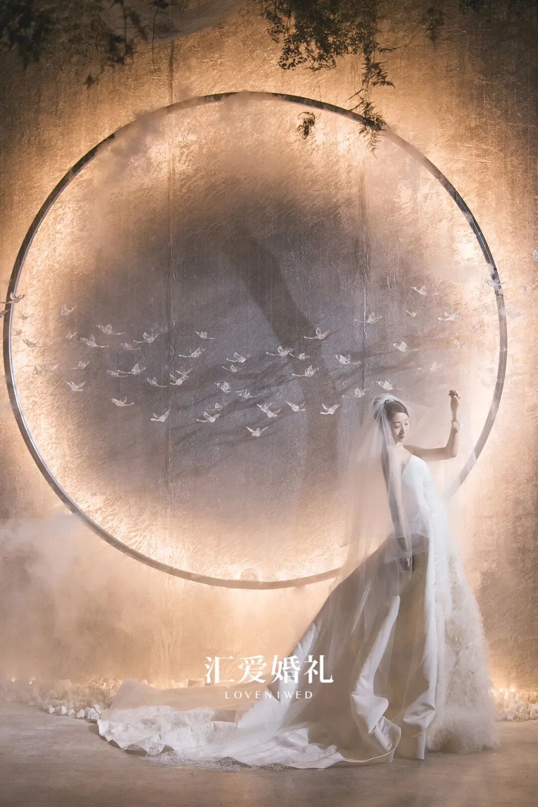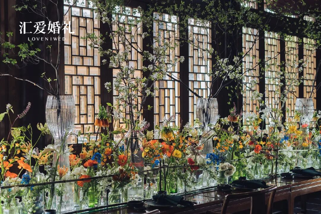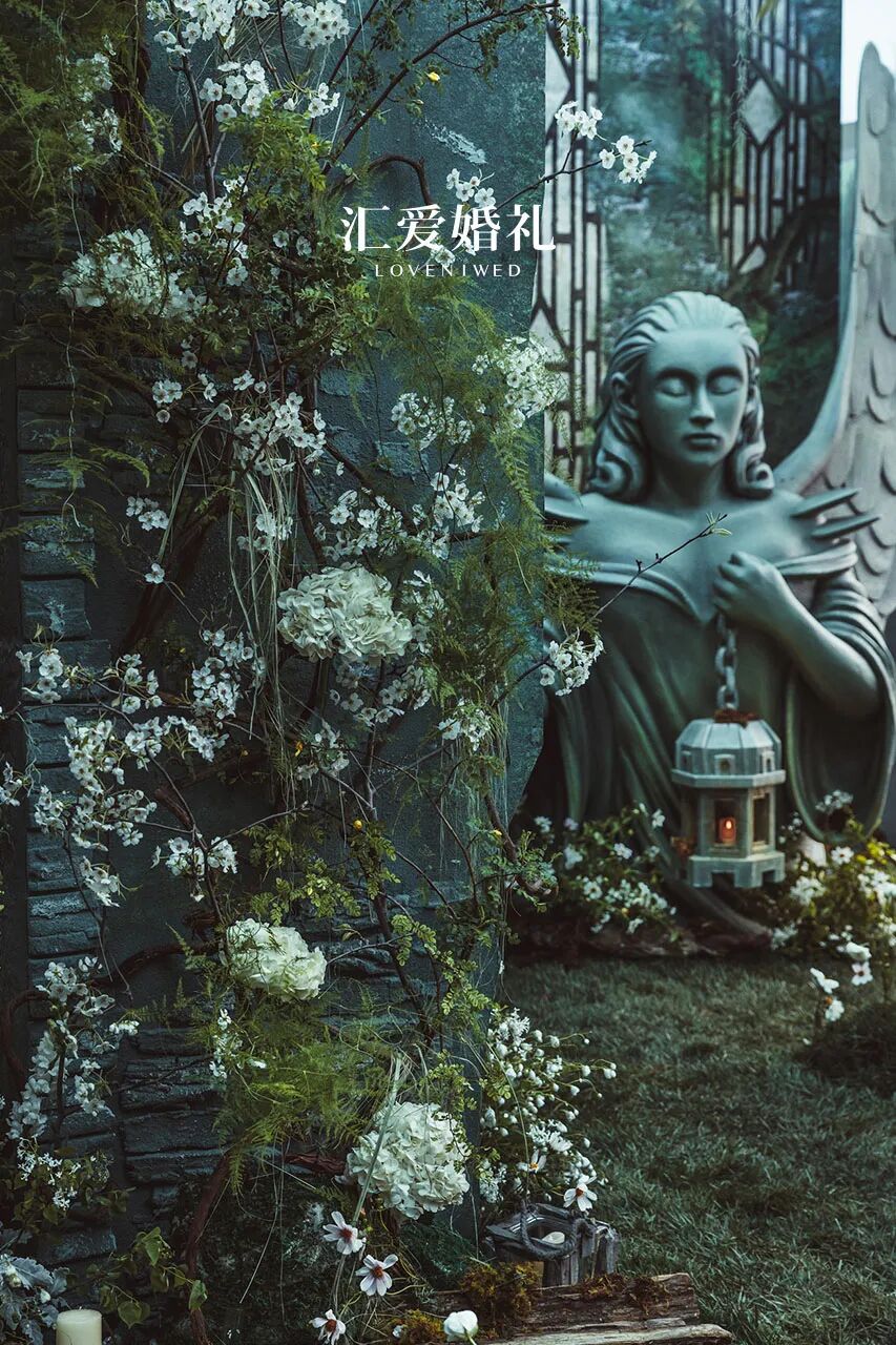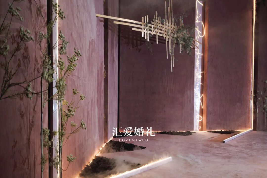 跟随光感变化色调的肌理背景、隐隐晃动的花树暗影、舒缓柔纱、流动的水雾、柔和的音乐、舒适的气味以及每一个精心制作的手工花艺,每一个元素都该扮演传递情感的角色,从而体现新人品味。