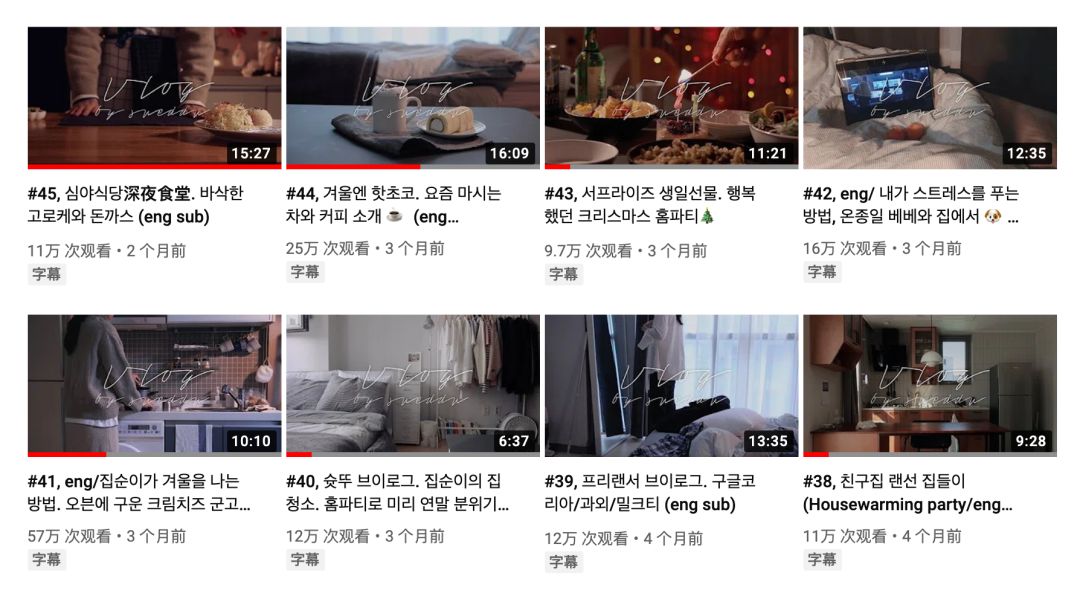 尽管只是这种日常生活的分享,sueddu的每支vlog都在YouTube上拥有几十万的播放量。
