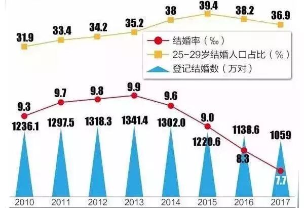 根据国家统计局和民政部的数据,从2013年开始,全国结婚率已经从9.9%降到了7.2%,创下2013年以来的新低。