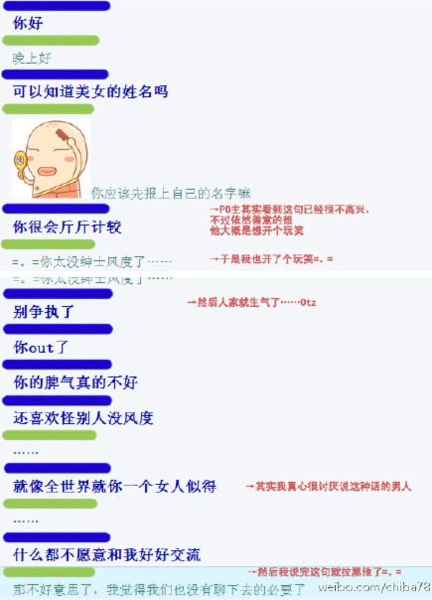 蓝色是相亲男,绿色是PO主
