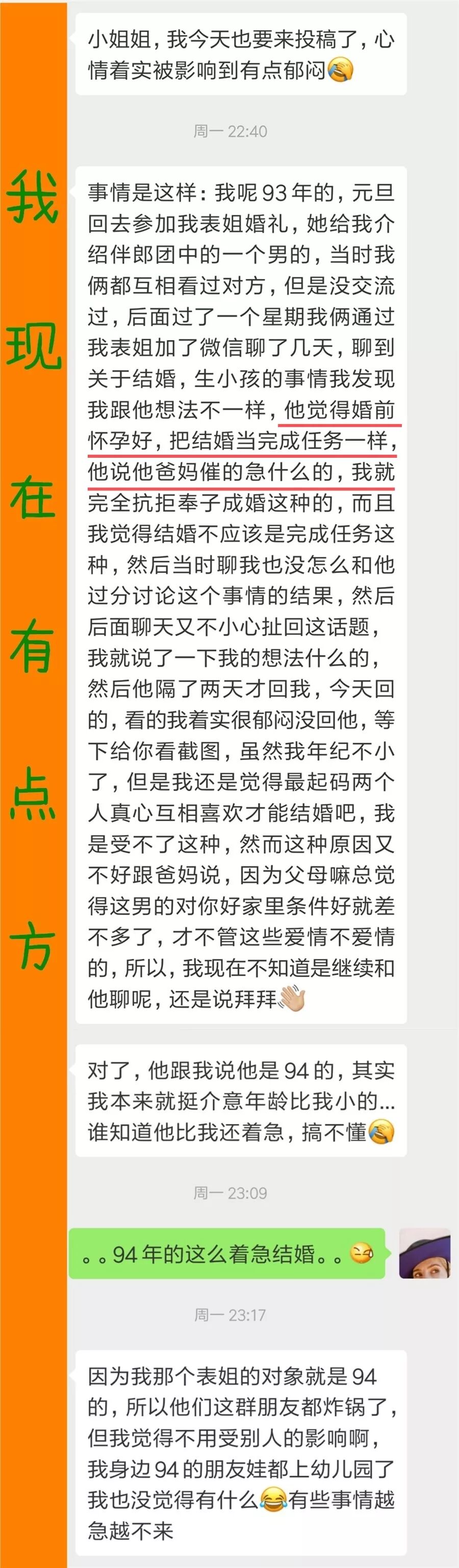 相亲认识的人+病态般想结婚+支持未婚先孕