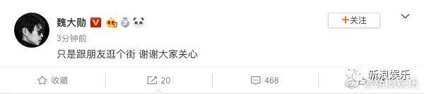 魏大勋很快就出来否认了,说只是和朋友一起逛个街。