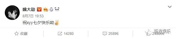 然后是,昨天魏大勋在微博发了一条祝七夕快乐的微博。