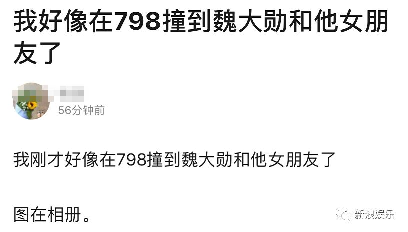 由头是今天有网友称遇到了魏大勋和一位包裹严实的女生逛北京798。