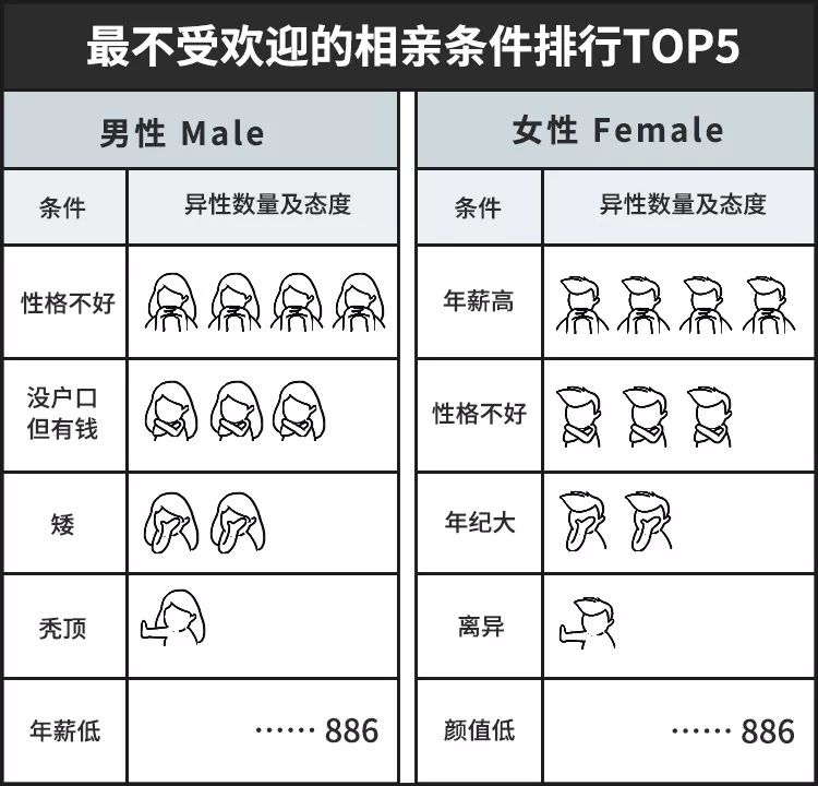 男性最不受欢迎程度:年薪低>秃顶>矮>没户口但有钱>性格不好