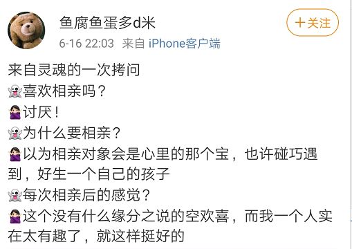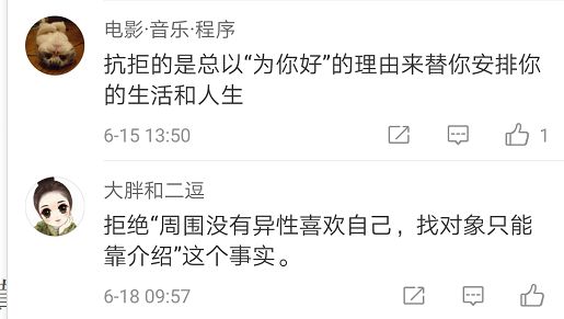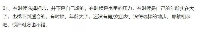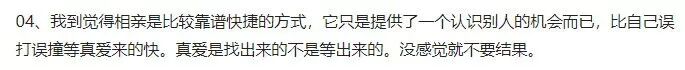 当然,也有觉得相亲是件可以接收的事情的,毕竟,“为你好”是父母的初衷!