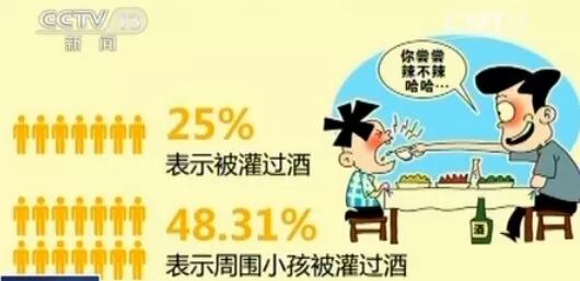 除此之外,将近一半的受访者表示自己周围有小孩被大人灌过酒。