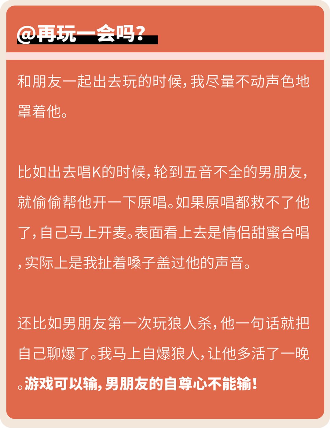 女朋友们们尤其明白男生的自尊心,特别是在恋爱中的自尊心,有多么脆弱不堪一击。