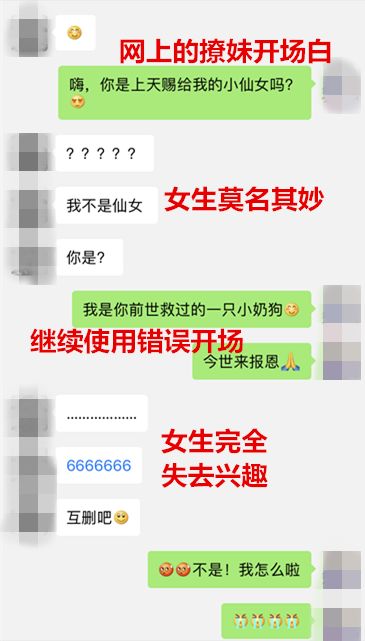 无论你此时对她多么满意,你也要记得你们此时是:陌!生!人!还不熟。你如果用暧昧阶段的调情语言或者是网络上的撩妹开场白,你就死定了!
