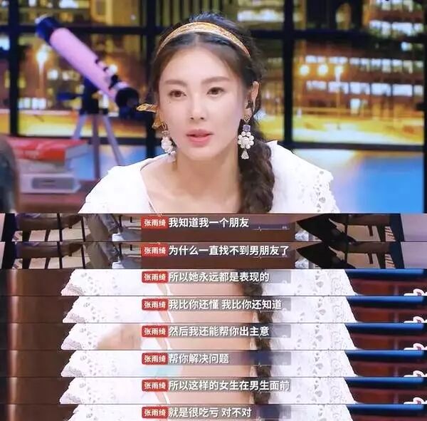 张雨绮在节目中说:女生太聪明在恋爱中会很吃亏。