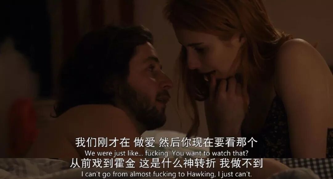 片中相爱五年的情侣不再渴慕对方的身体,做着做着发现避孕环掉了,马上扫兴地说:我不想做了,我想看HBO播的霍金纪录片...