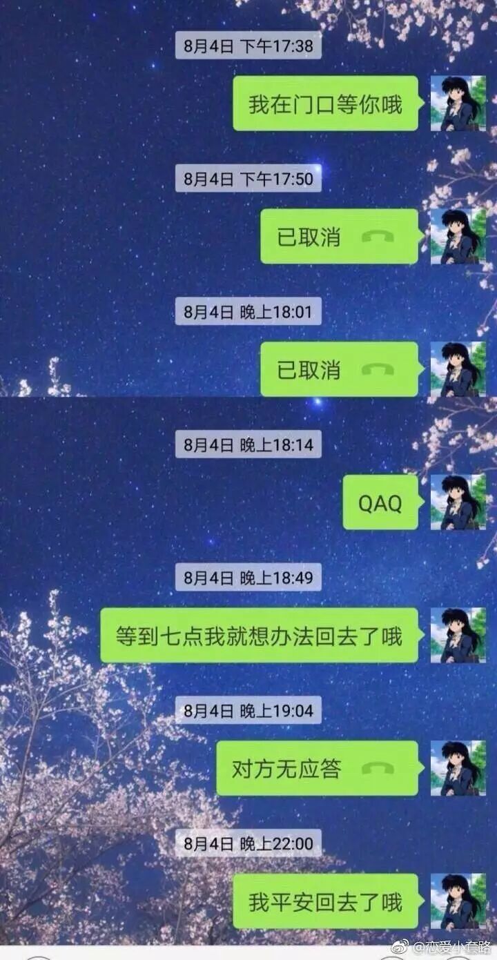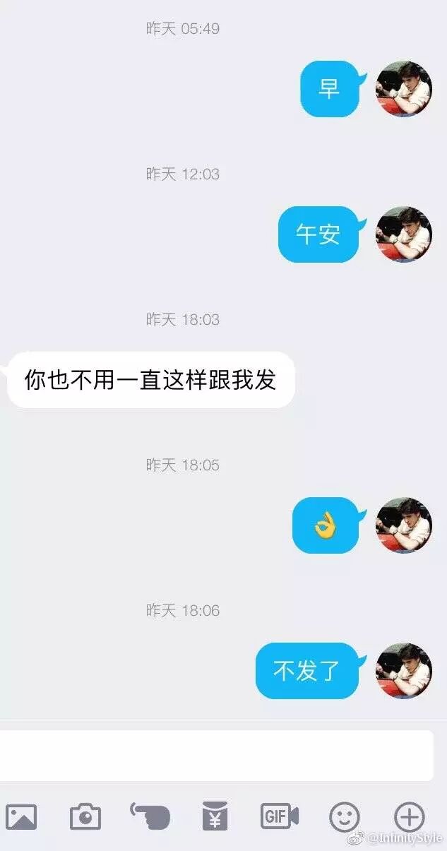 你以为自己早安、晚安、午安不间断的发他就会感动,实际上不爱你的人根本不想收你的消息。