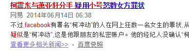 而柯震东和萧亚轩分手还在Facebook八出一个小号,疑似影射萧亚轩