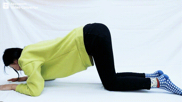猫式弓腰,根据身体情况保持两三分钟即可,可多次做但不需保持时间太长。