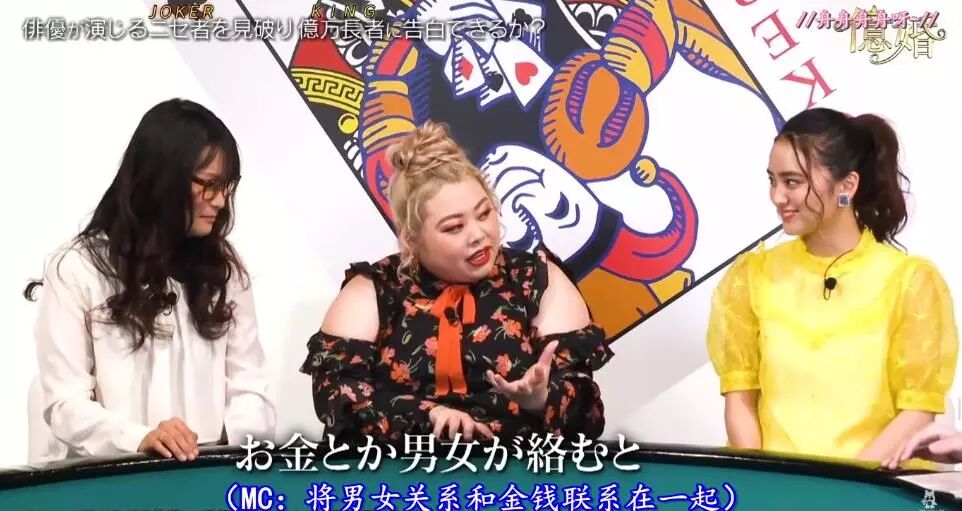 令人意外的是,对于富人的刻板印象这一次啪啪打脸。你以为有钱人都是名车名表花钱大手大脚,但节目里的真富豪穿的是zara还不太会开红酒,而假富豪却开名车送贵重的礼物。一位28岁的女嘉宾迅速下手,节目进行了20分钟就摇铃表白,而这位幸运的天气预报员小姐姐在牌底揭晓时,惊喜得就像6亿元都砸到了自己身上。因为她告白的是全场最高年收入6亿日元的IT企业CEO,就是king。