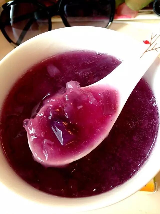 4.将炖好的燕窝和紫薯混合,慢慢搅拌均匀即可食用。