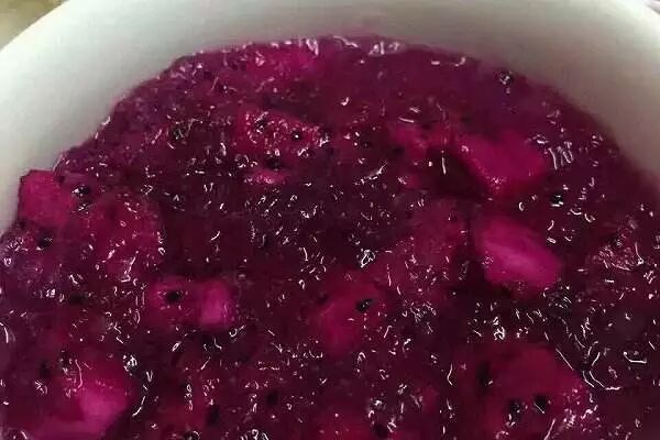 3.将红心火龙果肉切块或者挖成肉球,放入燕窝中混合食用即可。