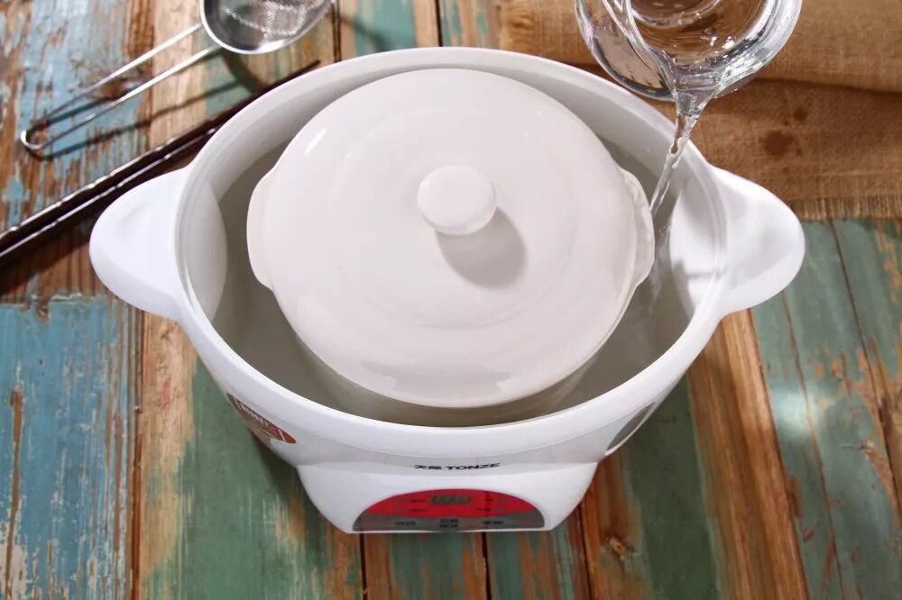 10、将燕窝放入如图炖盅内,炖50分钟左右即可。若使用自家的锅,小火隔水炖燕窝,仅需25分钟左右就可以了。