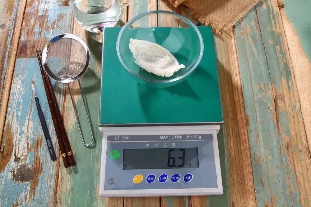 1、任意拿一盏燕窝,先称一下重量为6.3克。