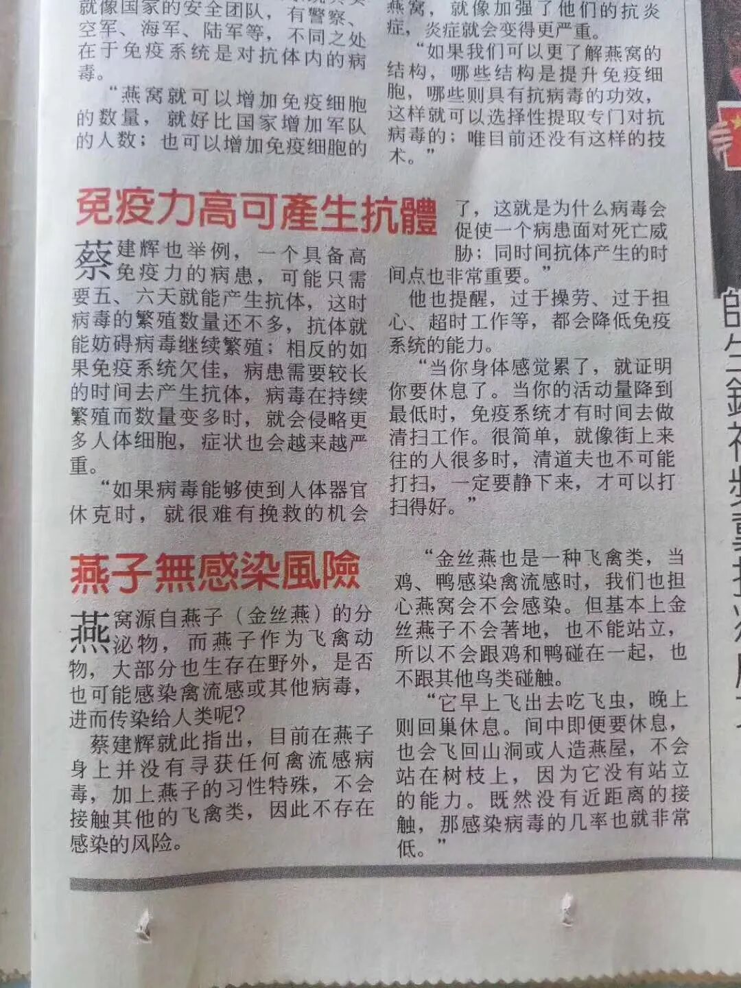 “燕窝就可以增加免疫细胞的数量,就好比国家增加军队的人数;