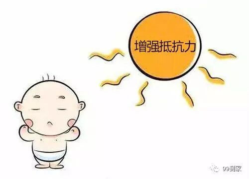 日光的红外线能扩张皮肤血管,紫外线可杀菌,适当地接受阳光照射,可促进宝宝新陈代谢和生长发育,预防佝偻病和贫血,增强机体抗病能力。