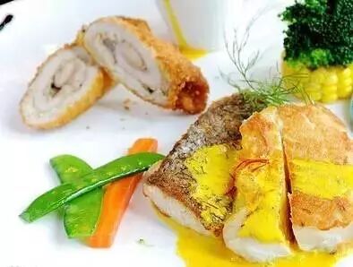 在温开水中把藏红花泡5分钟。把鸡蛋、面粉和淀粉调匀,摊在平底锅中煎熟,做成蛋皮备用。鸡脯肉剁泥,加少许盐和鸡精,裹蛋皮,包出精美形状,大火蒸20分钟。将藏红花水煮开,放盐、鸡精和淀粉勾薄芡。将鲜红的芡汁浇在鸡卷上即可。