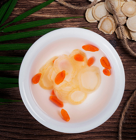 将西洋参切片,取3克放入砂锅内,加水适量,用文火煮10分钟左右,趁早饭前空腹,将参片与参汤一起服下。