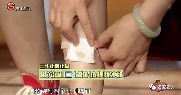 【做法】取适量三七粉加黄酒,调成糊状,均匀涂在纱布上,厚度约1-2毫米,贴敷在淤青的地方,上面覆盖一层保鲜膜保湿,然后用胶布固定。每次敷2-4小时即可。