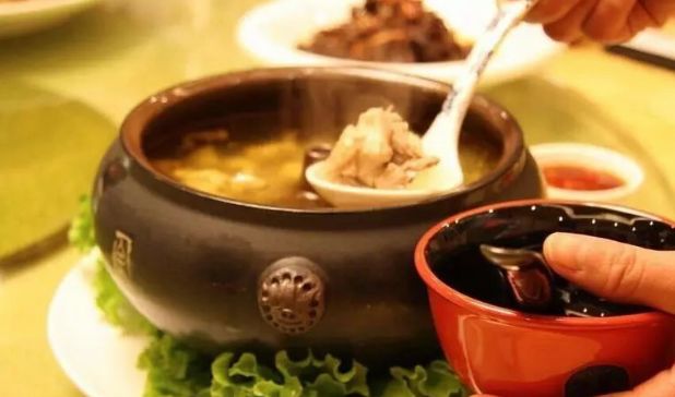【制法】鸡肉洗净、斩块;人参切厚片,三七洗净捣碎,与鸡肉一齐放入炖盅内,加开水适量,炖盅加盖,置锅内用文火隔水炖2小时,调味供用。