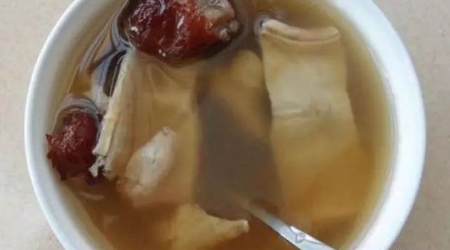 材料:花胶2头、当归2片 、南北杏适量、红枣6颗、冰糖适量。