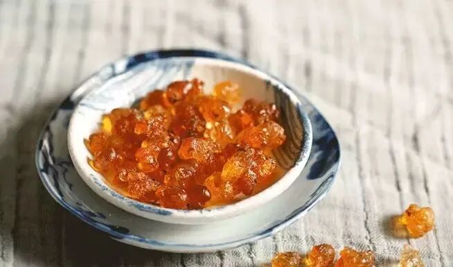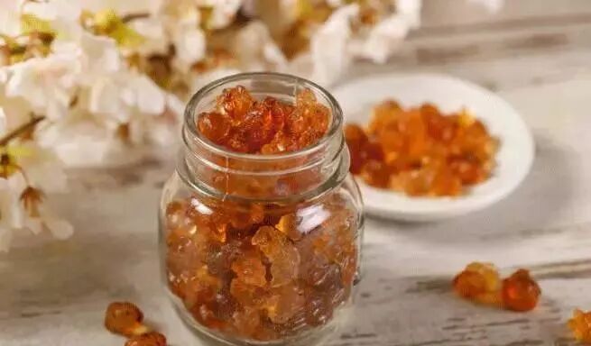 桃胶,还有个很有诗意的名字——桃花泪。是桃树皮中分泌出来的树脂,通过太阳晒蒸发,形成固体,干的桃胶呈结晶石状,形似琥珀。