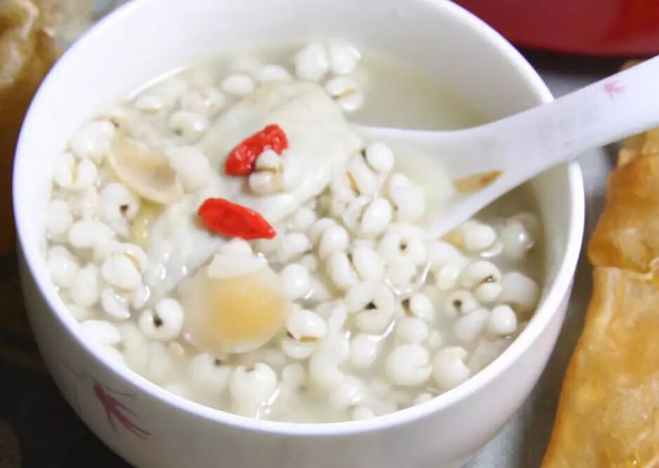 材料:鱼胶15克,百合15克,薏米40克,猪肉50克。