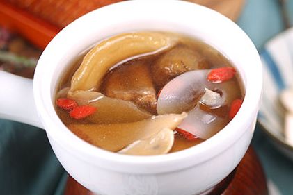 做法:花胶预先浸透发开,切成块状,备用。将已经用清水洗净的花旗参、枸杞、生姜、红枣连同花胶放入炖盅内,加入适量的水。盖上炖盅盖,放入锅中,隔水、温火炖2小时即可取出,加入幼盐调味即可。