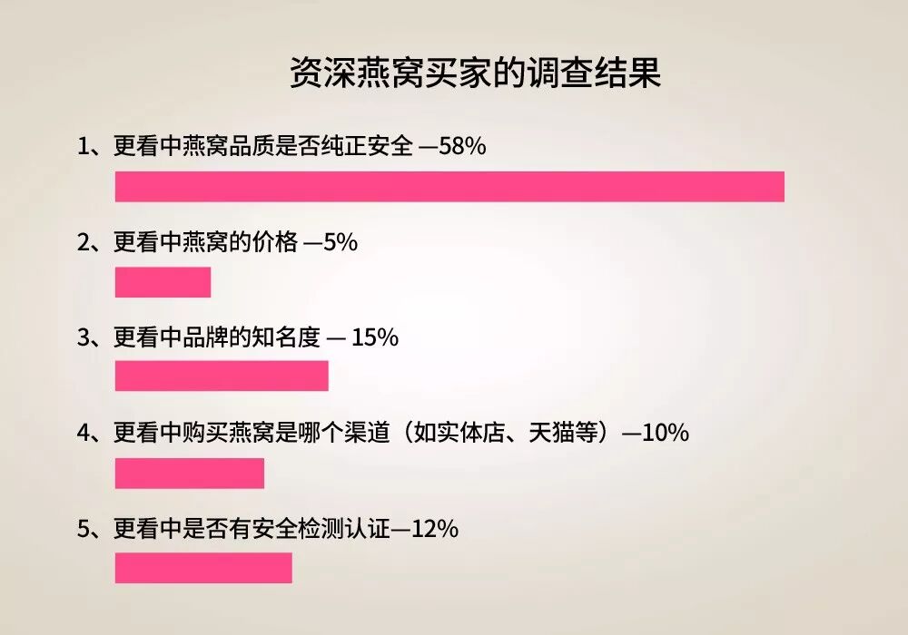 回到燕窝的话题上,既然明星代言不能代表一个产品的品质。那挑选燕窝产品,你到底关心什么问题?以下是我们对500名资深燕窝买家的调查结果: