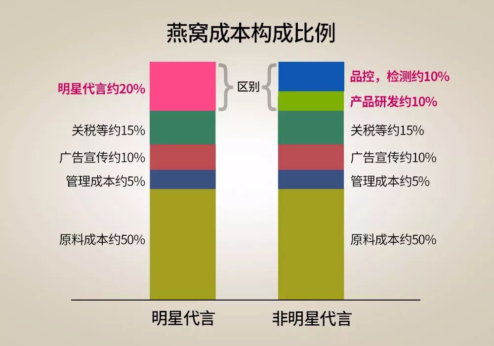 老百姓吃燕窝是追求滋补功效,而不是为了追星~~这也给押宝在明星代言的燕窝商家们破了一盆冷水。有明星代言固然能快速拉高品牌的认知度和逼格,但是品质和食品安全才是老百姓真正关心的问题。