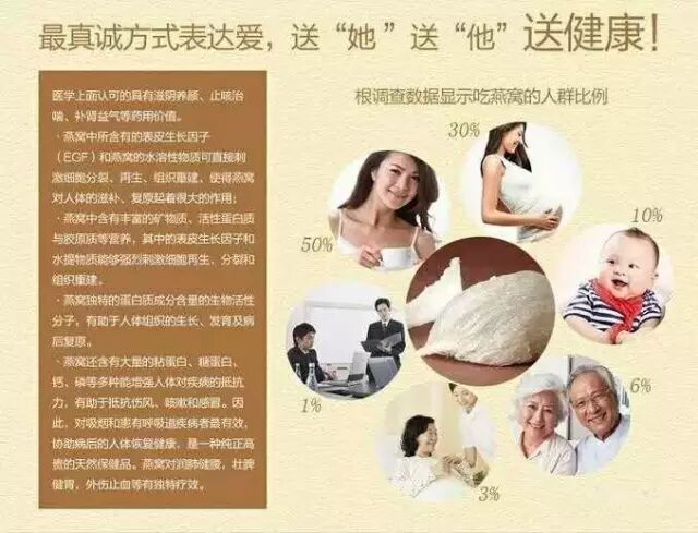 由于它天然纯正、文化底蕴深厚、档次高、品位浓、地位尊贵,加上价格适宜,被人们逐渐认识与接受,燕窝消费成了人们热衷的新话题。