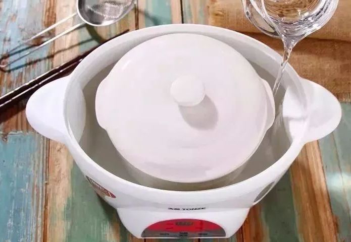 b.炖盅放在锅中炖煮时,锅里的水要低于炖盅的口部,一般炖盅外的水位大概是炖盅的一半。
