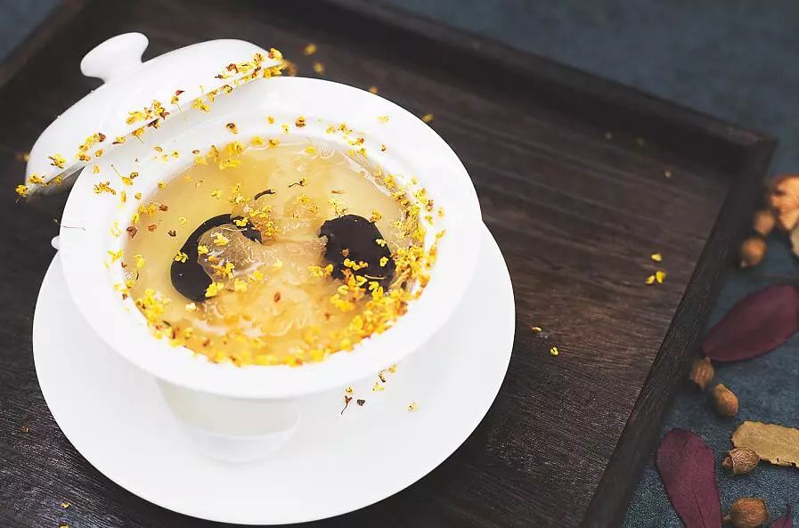 ① 将燕盏泡发2~3个小时,挑去细小的燕毛,加水放入炖盅内慢炖30分钟左右;