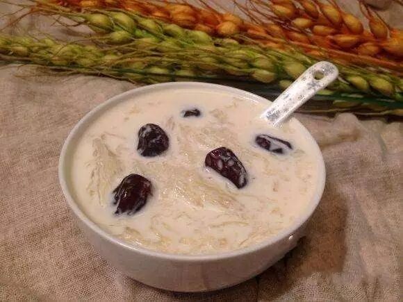 牛奶营养丰富,尤以钙的含量高,且特别易被人体吸收。孕妇喝牛奶不仅能够为母体补充营养,而是对日后宝宝的骨骼发育有很大的益处。搭配红枣,还能安神养血。