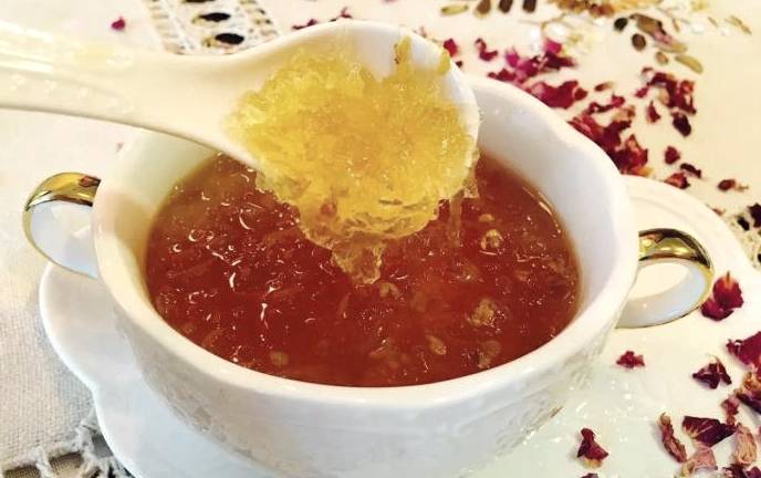 3.炖好后的燕窝冷却到40°左右的温度时,加入蜂蜜拌匀即可食用。