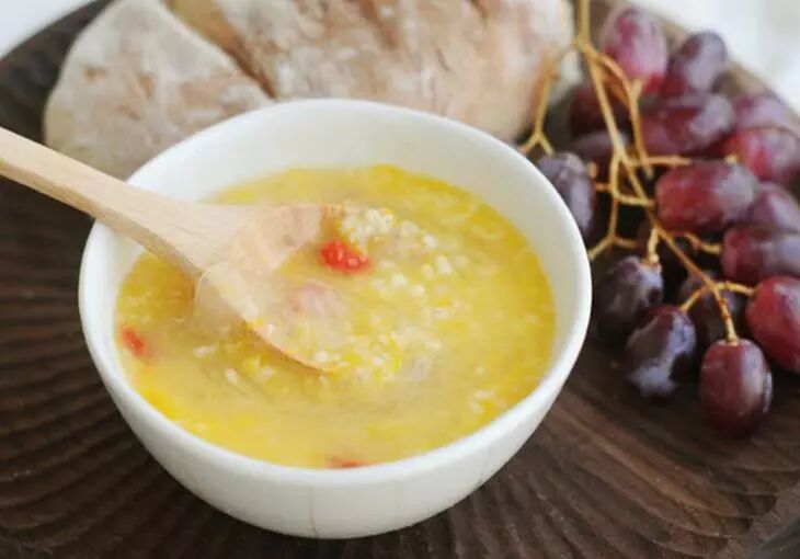 3.将小米粥盛到碗里,待稍凉后,加入炖好的燕窝拌匀,可加适量食盐调味。