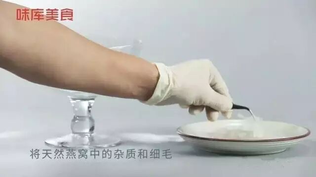 许多窝友问挑燕毛如何挑得又快又好,小编在这里分享一下自己平时用的方法:将泡发好的燕窝放到小网筛中,将小网筛浸泡在纯净水中,用手腕的力量轻轻上下晃动小网筛,杂质和细毛就容易漂到水面上,多换几次水,燕窝就比较容易挑干净了。而且,可以把燕窝放在白色碟子上面,因为燕毛和杂质的颜色较深,在白色的碟子上比较容易挑出来。