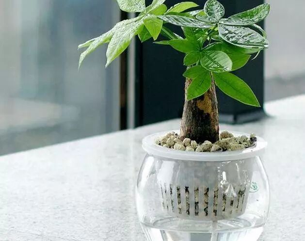 选择水培的容器,尽量选择宽口长口的玻璃,而不要选择一些造型奇怪的容器。这样对于水培植物的根系生长不利,同时养护的时候需要注意不能把绿植的叶子浸入到了水中,如果出现结冰的现象,会直接把叶脉冻伤。