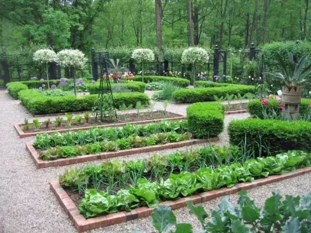 还可以通过绿篱框定种植池边界,在绿篱池中种植蔬菜,这样使得蔬菜园更加美观。