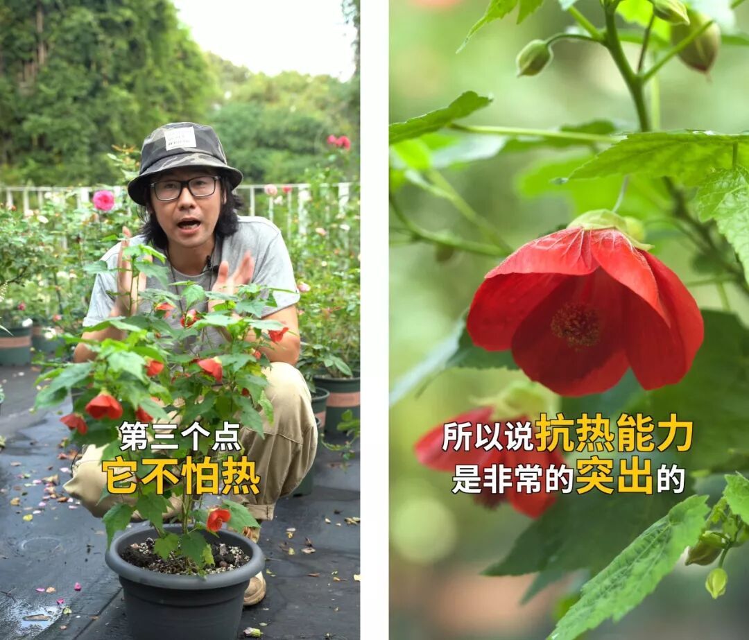 苘麻耐高温能力很强,夏季不需遮阴,高温日晒也不会使花量减少,花色减退,非常皮实。