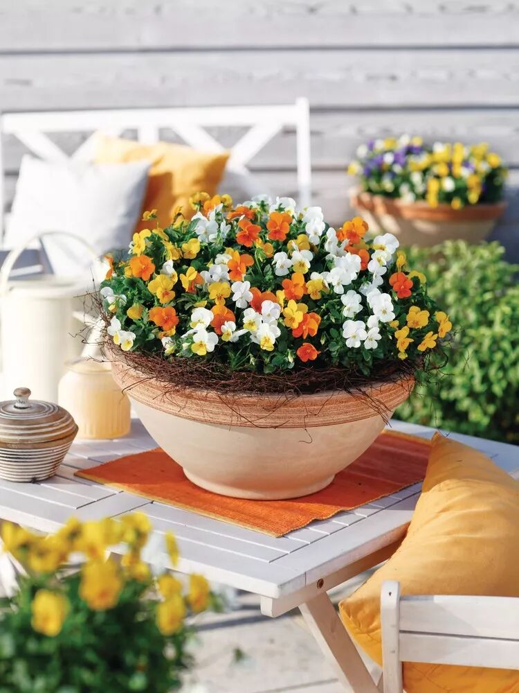 打造爆盆效果,需要不断得打顶摘掉花芽,角堇便会不断分枝,花后及时修剪掉残花。